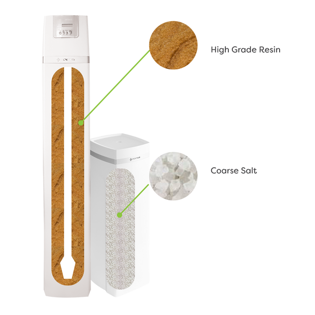 Premium quality, food grade resin with a uniform bead size, means the unit has up to 20% higher exchange capacity than standard resin. Less frequent regenerations are required, giving savings in water use and salt.
